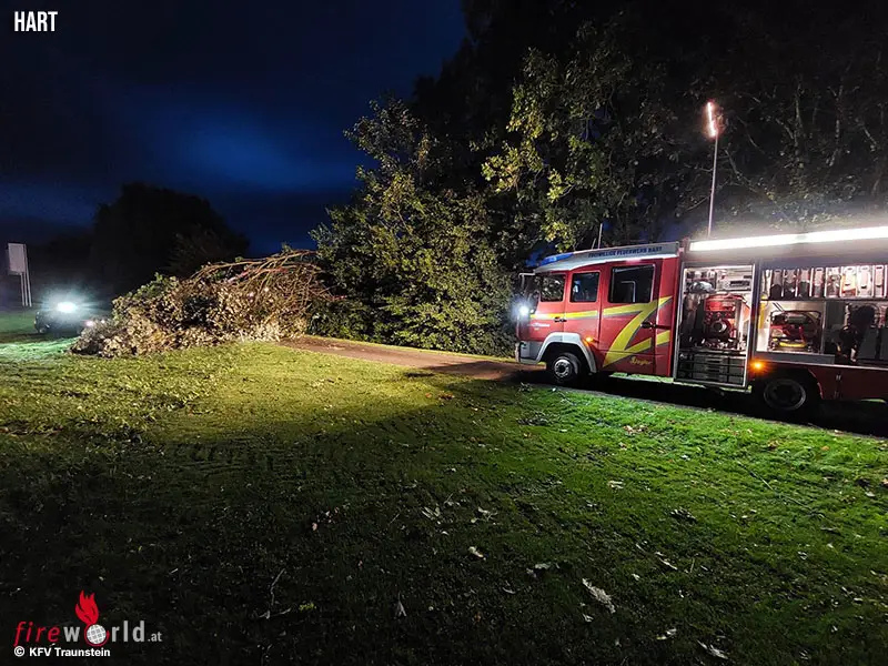 Die Tittmoninger mussten sich außerdem mit einer abgerissenen Stromleitung befassen, die einen Baum entzündete. Der Brand war rasch gelöscht. Für Aktiven der Feuerwehr Fridolfing standen zwei Alarmierungen durch automatisierte Brandmeldeanlagen und sieben Einsätzen wegen blockierter Straßen gegenüber. Die Kirchanschöringer Kameraden rückten aus, um einen Baum zu zerschneiden, der auf einem Wohnwagen gefallen war. Auch mussten mehrere Straßen durch Waldstücke wieder befahrbar gemacht werden.