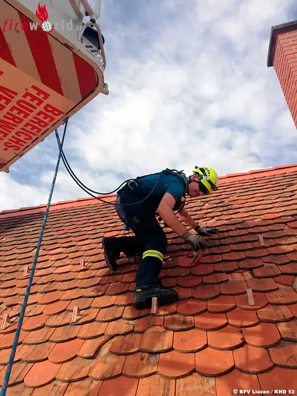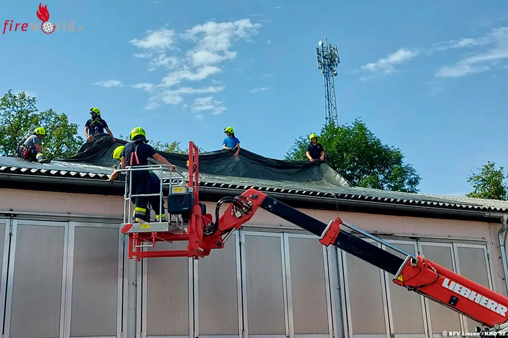 KNITTELFELD / LIEZEN (STMK): Ein technischer Zug der KHD-Bereitschaft des Bereichsfeuerwehrverbandes Liezen stand am 27. August 2023 im Assistenzeinsatz in Knittelfeld, wo an die 300 Dächer bei einem Hagelunwetter in Mitleidenschaft gezogen wurden.