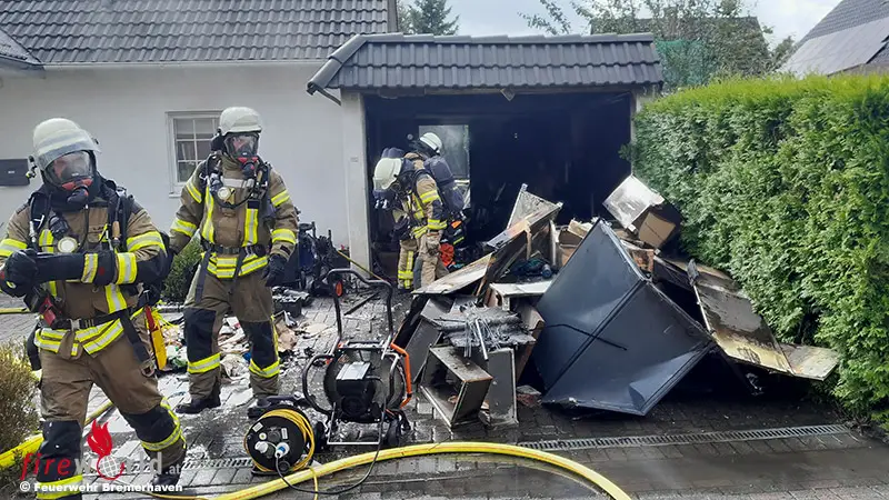 D: Feuer in Garage neben Wohnhaus in Bremerhaven