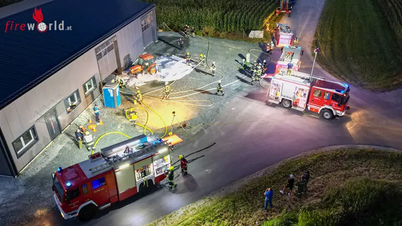Bgld: Feuer im Industriegebiet von Stinatz von vier Feuerwehren beübt