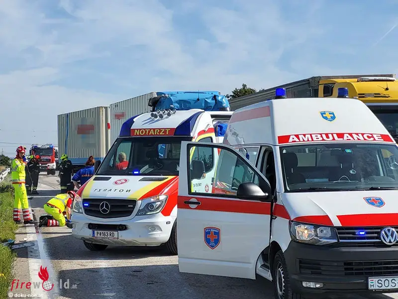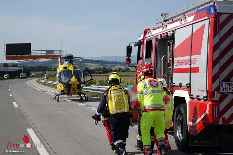 Im EInsatz standen mehrere Rettungswägen, ein Notarzthubschrauber, ein bodengebundenes Notarztmittel sowie ein Bezirkseinsatzleiter Rettungsdienst. Durch die Feuerwehr Loosdorf und Feuerwehr St.Pölten Stadt wurden die beiden beschädigten Lkw von der Autobahn verbracht.