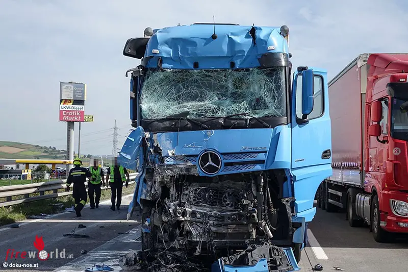 Nö: Schwerer Lkw-Auffahrunfall auf der Westautobahn bei Loosdorf