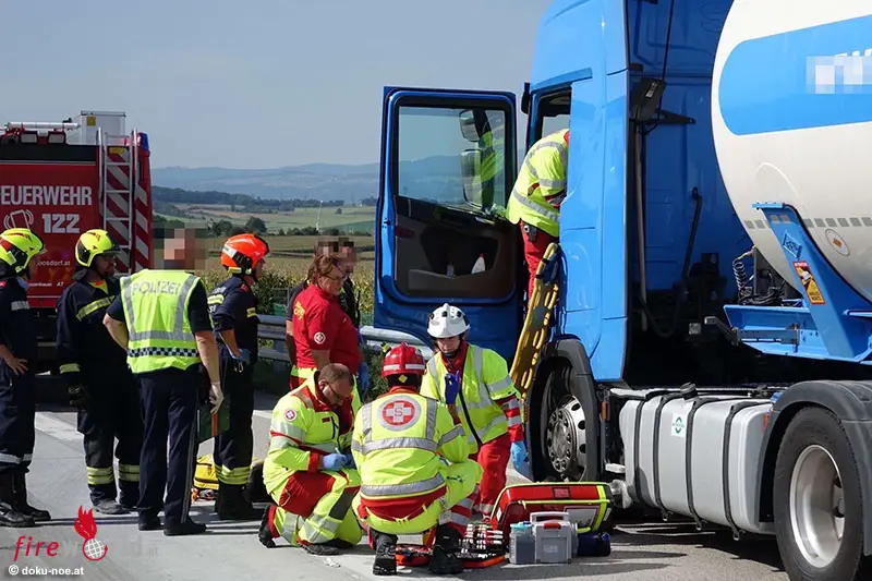 Der zweite Lkw-Lenker, der auf den anderen auffuhr wurde ebenfalls unbestimmten Grades verletzt und unter Notarztbegleitung ins Krankenhaus St.Pölten gebracht. Ein zufällig vorbeikommender Rettungswagen und Ungarn sowie ein Intensivtransport leisteten sofort Erste Hilfe.