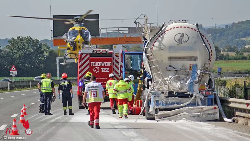 Der mit Futtermittel geladene Siloanhänger platzte dabei auf und verstreute seine Ladung über mehrere hundert Meter auf der Autobahn. Der Lenker wurde dabei in seinem Führerhaus eingeschlossen und musste von den Rettungskräften aus der Kabine befreit werden. Er wurde anschließend mit schweren Verletzungen mit dem Notarzthubschrauber ins Krankenhaus Amstetten geflogen.