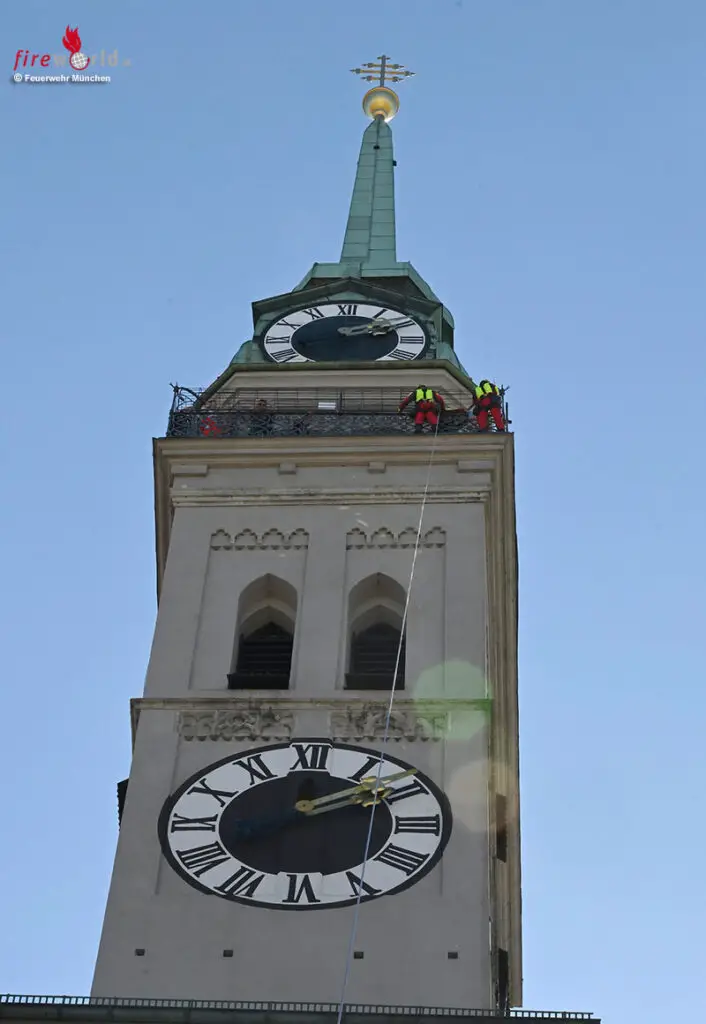 Bayern: Aufwendige Höhenretter-Abseil-Aktion aus 56 m Höhe am Alten Peter in München