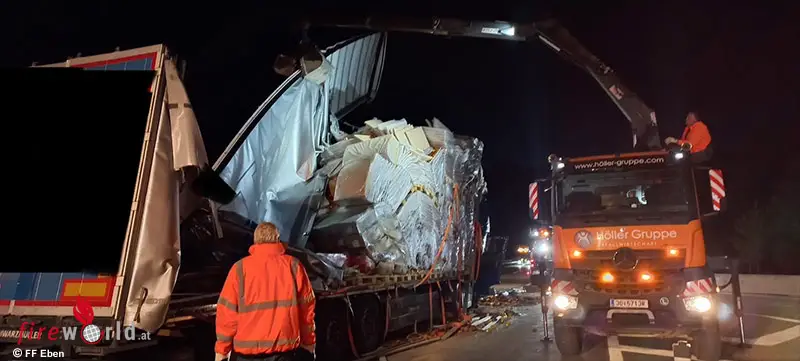 Folglich mussten die Feuerwehren aus Eben und Altenmarkt den Bosnier mittels hydraulischen Werkzeugs aus der Fahrerkabine bergen. Der Verletzte wurde im Anschluss mit dem Rettungshubschrauber in das Klinikum Schwarzach geflogen. Der Zweitbeteiligte 44-Jährige erlitt ebenfalls Verletzungen unbestimmten Grades und wurde vom Roten Kreuz in das Klinikum Schwarzach verbracht. Ein durchgeführter Alkomattest bei dem Serben verlief negativ. Der Autobahnabschnitt war für die Dauer der Unfallaufnahme und der Aufräumarbeiten gesperrt.