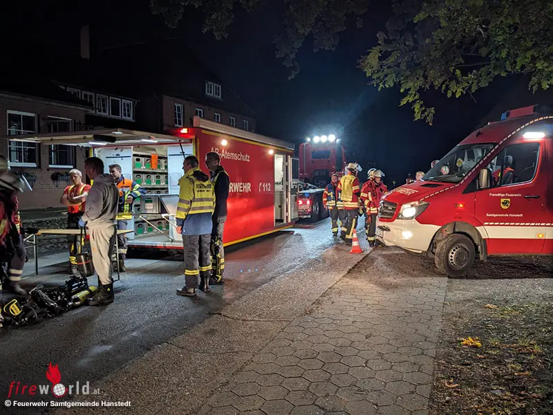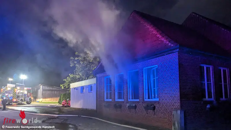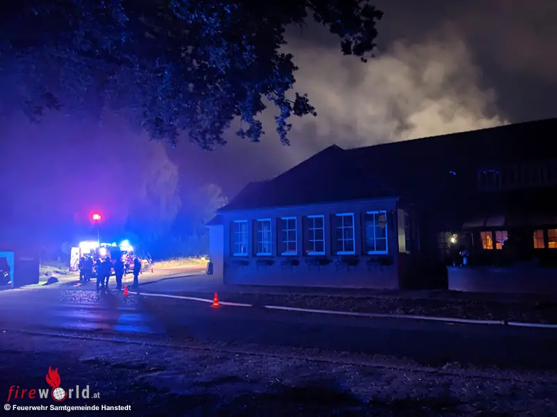 HANSTEDT (DEUTSCHLAND): Ein ausgedehnter Zimmerbrand in der Nindorfer Gaststätte „Grillhus zum Hirsch`n“ hat in der Nacht zu Freitag, 29. September 2023, einen Großeinsatz von Feuerwehr, Polizei und Rettungsdienst ausgelöst. Gegen 00:30 Uhr bemerkte ein Bewohner einer der fünf Wohnungen im Obergeschoss des Gebäudes Brandgeruch. Geistesgegenwärtig alarmierte er die Nachbarn und wählte den Notruf.
