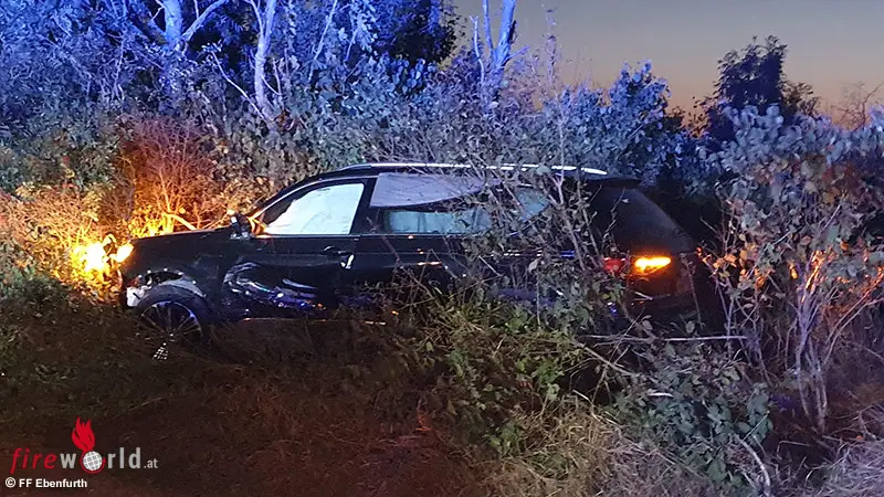 Nö: Pkw bei Kollision auf der B 60 bei Ebenfurth in Windschutzgürtel geschleudert → Entstehungsbrand