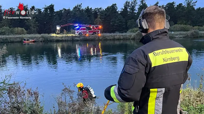 NÜRNBERG (BAYERN): Gegen 17:30 Uhr des Montag, 9. Oktober 2023, wurden Einheiten von Feuerwehr Nürnberg, Wasserwacht, DLRG, Rettungsdienstes und Polizei (Wasserschutzpolizei und Landespolizei) in den Bereich der Schleuse Eibach (Wiener Str.) alarmiert. Eine Radfahrerin hatte sich bei der Integrierten Leitstelle Nürnberg (ILSN) gemeldet und von einer möglichen Sichtung im Wasser des Main-Donau-Kanals berichtet.