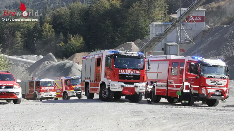 EIBISWALD (STMK): 313 Einsatzkräfte mit 76 Fahrzeugen übten am 14. Oktober 2023 am Gelände des Steinbruches am Radlpass in Eibiswald den Katastropheneinsatz. Unter den 294 Feuerwehrleuten waren auch 33 aus dem benachbarten Slowenien, Rotes Kreuz, Polizei und Bergrettung waren ebenso mit dabei.