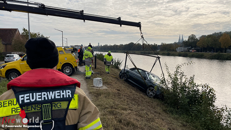 REGENSBURG (BAYERN): Am Vormittag des 19. Oktober 2023 wurde die Berufsfeuerwehr Regensburg zur Bergung eines Pkw aus der Donau alarmiert. Der Fahrer hatte sich bei dem Unfall selbst befreien können.