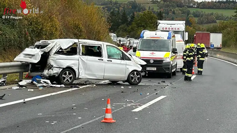 Um 10:16 Uhr ging bei der FF Pinggau der Alarm ein. 15 Einsatzkräfte rückten mit KDO, RLF und WLF-K aus. Beim Eintreffen am Unfallort bot sich folgendes Bild. Ein total demolierter Pkw stand auf dem Pannenstreifen bzw. der rechten Fahrbahn. Vier Personen, zwei Erwachsene und zwei Kinder, hatten Verletzungen unbestimmten Grades erlitten und wurden bereits von Passanten und in weiterer Folge von Feuerwehrsanitätern und den Rettungskräften betreut.