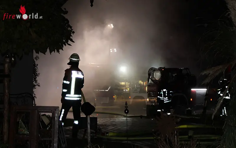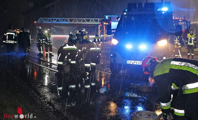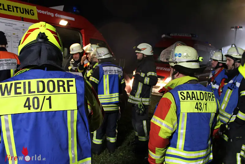 Nach dem Eintreffen des Einsatzleitfahrzeuges der Kirchanschöringer Feuerwehr mussten sich die Führungskräfte zunächst einen Überblick über das genaue Ausmaß verschaffen. Einsatzleiter Johann Kirchhofer erkundete zusammen mit seinem Führungsteam die Lage sowie örtlichen Begebenheiten rund um das in Flammen stehende Stallgebäude. Dazu gehörte es auch die Hausbewohner zu befragen, um ein möglichst genaues Bild über die Gegebenheiten zu erhalten.