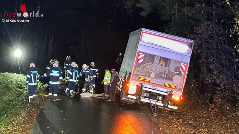 STINATZ (BGLD): Am späten Freitagabend, dem 10. November 2023, musste die Feuerwehr Stinatz ausrücken, um einen Lkw Richtung Hackerberg aus dem Graben zu bergen.