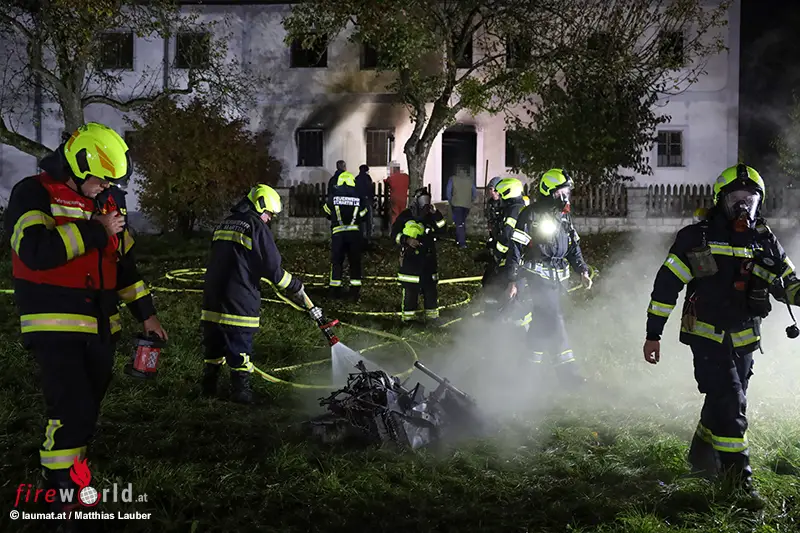 Die beiden Männer konnten das Gebäude rechtzeitig verlassen und blieben unverletzt. Die Feuerwehren St. Martin, Plöcking, Untermühl, St. Peter und Rohrbach konnten den Brand rasch unter Kontrolle bringen und gaben um 17:30 Uhr “Brandaus”. Am Gebäude entstand ein größerer Schaden, das Motorrad brannte völlig aus.