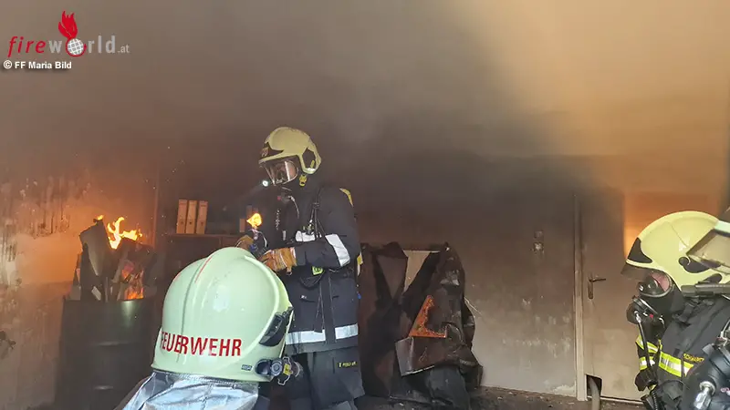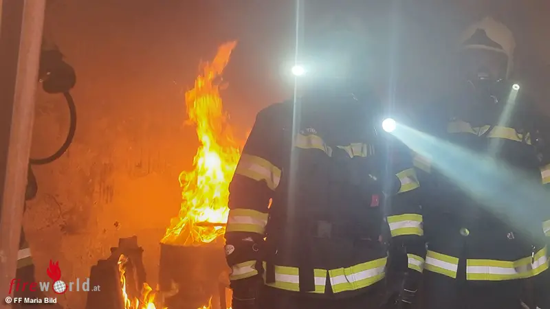 Bgld: Feuerwehren Mogersdorf-Ort und Maria Bild übten heiß im Abbruchhaus
