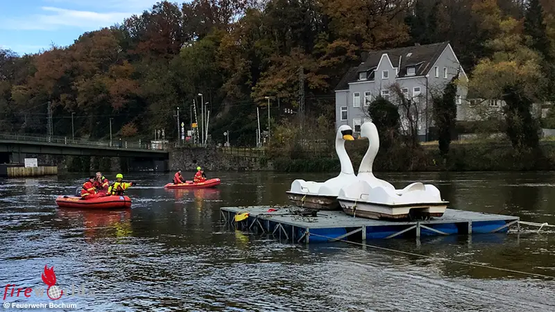 D: Tretbootschwäne auf Abwegen → Ungewöhnlicher Einsatz von Feuerwehr und DLRG auf der Ruhr