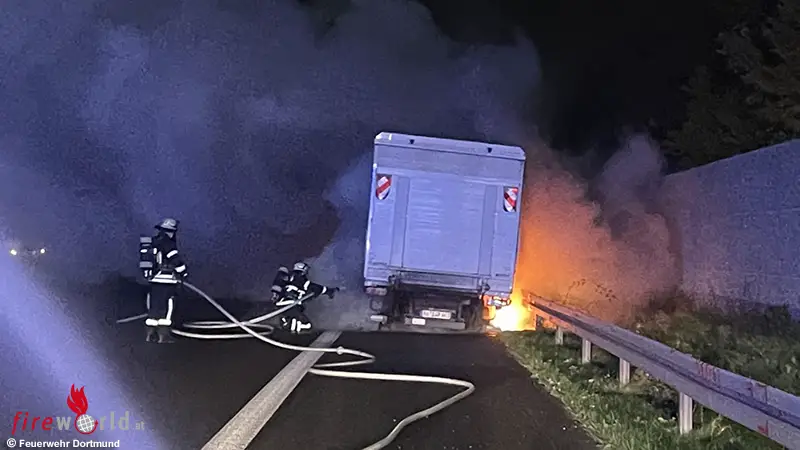 D: Lkw-Anhänger brennt auf der BAB 2 bei Dortmund → Sperre der Autobahn