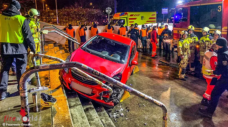 D: Pkw fährt auf Eingangstreppe zum Rudolf-Harbig-Stadion in Dresden → drei Verletzte