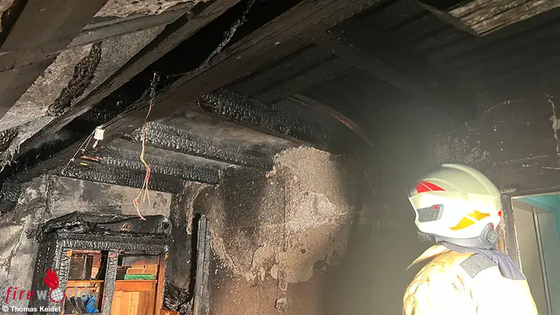 Zwei Atemschutztrupps begannen sofort mit einem Innenangriff, der sich aufgrund der enormen Hitzeentwicklung und des verwinkelten Dachbodens als äußerst schwierig erwies. Gleichzeitig führte der Einsatzleiter OFK ABI Bacher Patrick eine umfassende Lageerkundung durch, aufgrund dieser wurde die Alarmstufe 3 sowie zusätzlich die Drehleiter Obertauern alarmiert.