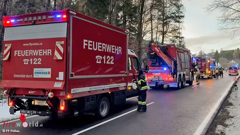 PÖLLAU (STMK): Am 10. Dezember 2023 wurde die Freiw. Feuerwehr Pöllau binnen kurzer Zeit zu zwei Einsätzen gerufen. Einem Kellerbrand in Schönau folgte ein Verkehrsunfall auf der L406.