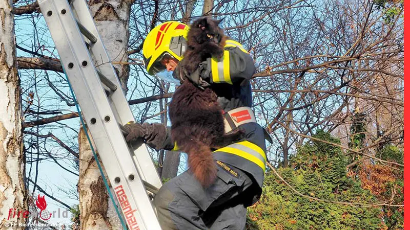 Nö: In Astgabel klemmende Katze von Feuerwehr Biedermannsdorf befreit