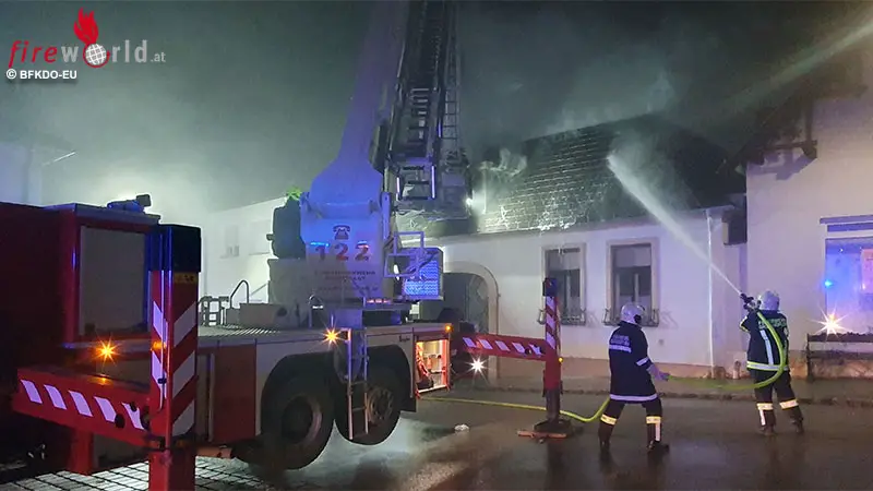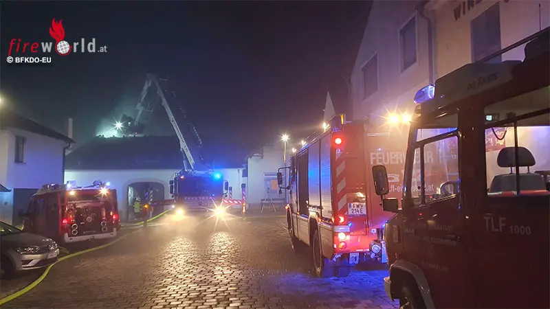 GROSSHÖFLEIN (BGLD): Kurz vor 02:00 Uhr kam es am 20. Dezember 2023 aus unbekannter Ursache zu einem Gebäudebrand im Ortsgebiet von Großhöflein.