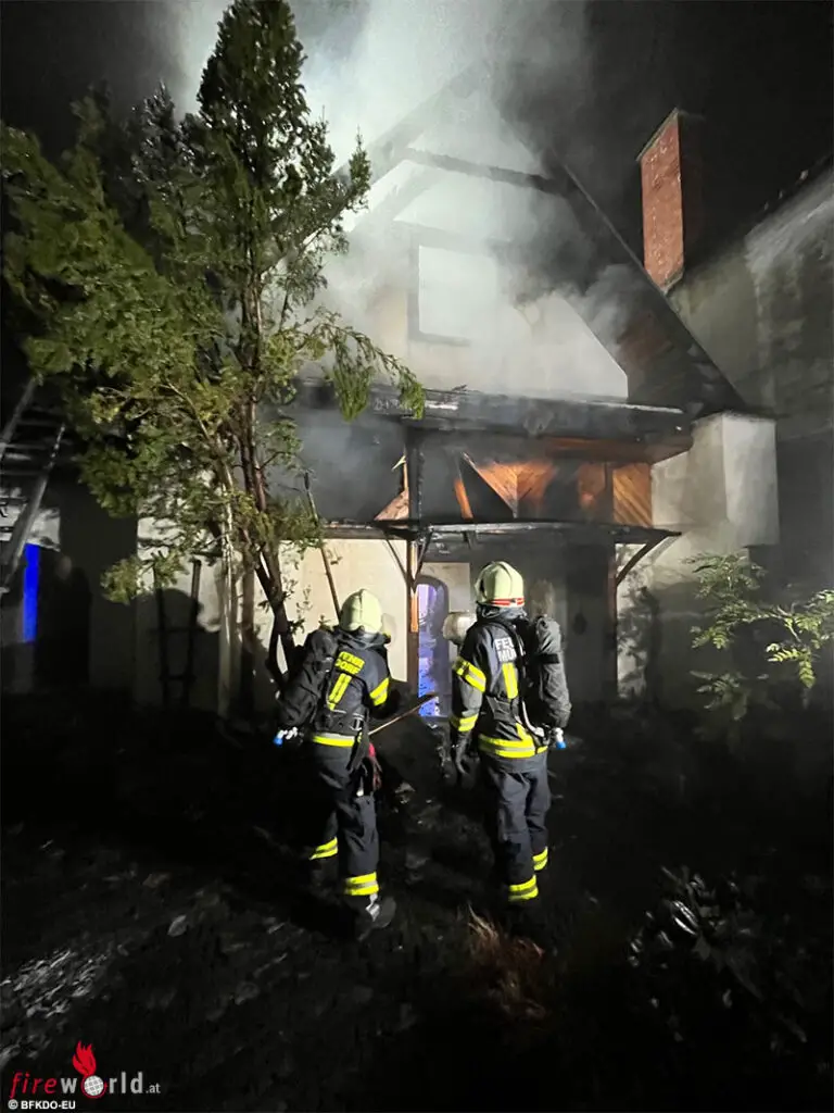 Beim Eintreffen der erstausrückenden Feuerwehr Großhöflein stand der Dachstuhl des unbewohnten Teils eines Einfamilienhauses im Vollbrand. Durch die rasche und umfassende Brandbekämpfung der alarmierten Feuerwehren konnte ein Übergreifen auf die Nachbarobjekte verhindert werden.