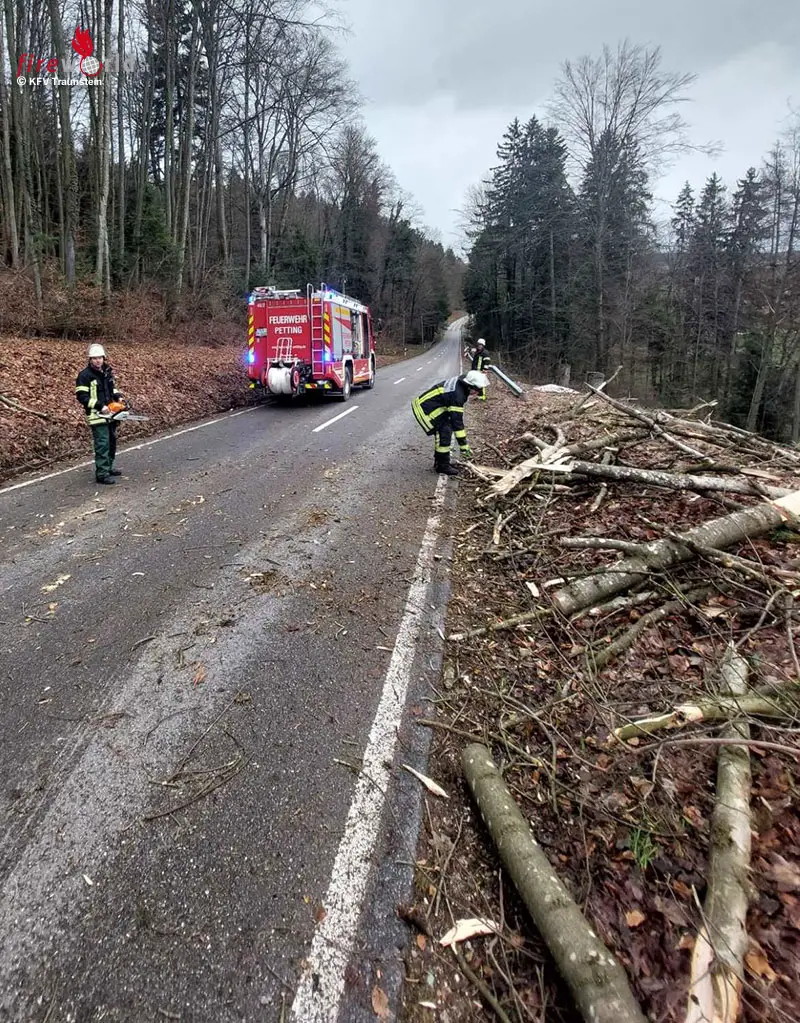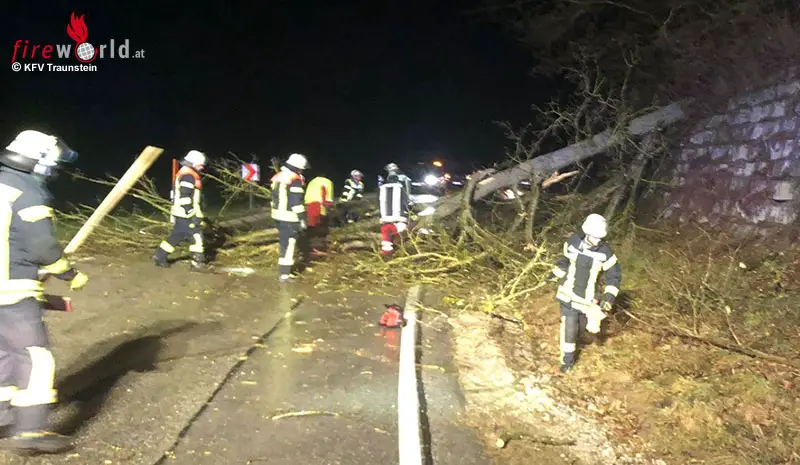 In Kirchanschöring waren „Windbrucheinsätze“ auf der Kreisstraße TS 25, der Mühlenstraße, Leobendorfer Straße sowie im Bereich Eschelbach erforderlich.