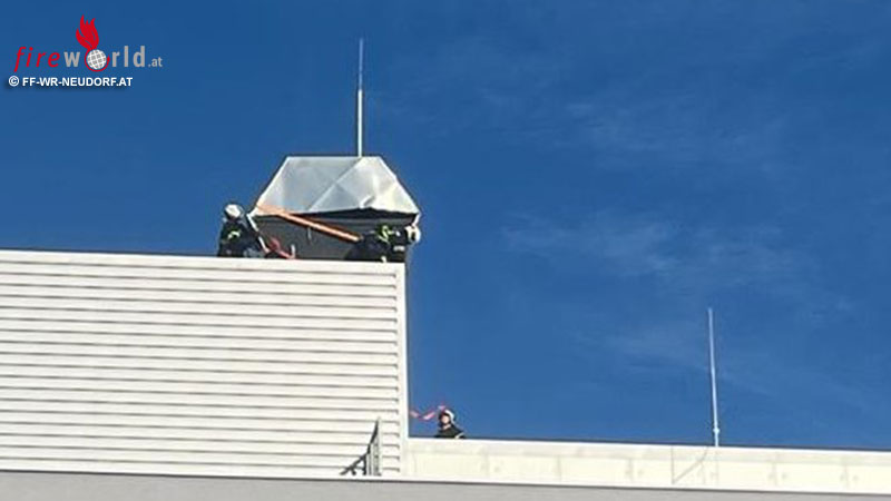 Auf einem Bürogebäude eines Gewerbebetriebes waren Teile der Lüftungsanlage durch die starken Windböen in Gefahr. Die Wiener Neudorfer Einsatzkräfte reagierten schnell und setzte Maßnahmen, um mögliche Schäden zu verhindern.