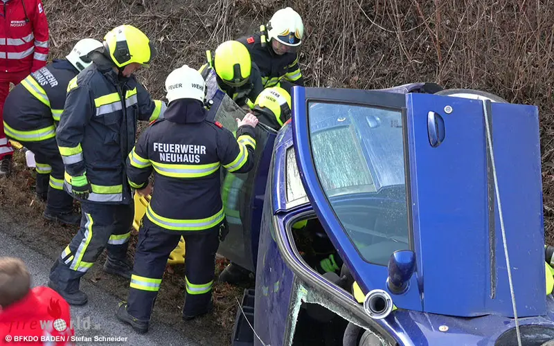 Nö: Herausfordernde Rettung einer geistig- und körperlich beeinträchtigten Person aus Pkw in Seitenlage bei Maria Raisenmarkt