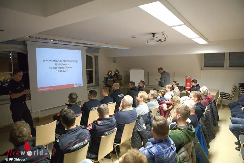 OHLSDORF (OÖ): Am Dienstag, 16. Jänner 2024, wurde für den Ohlsdorfer Gemeinderat erstmalig eine Feuerwehr- Informationsveranstaltung im Feuerwehrhaus Ohlsdorf abgehalten. Anlassgrund für die Veranstaltung war, dass sich das Feuerwehrwesen in den letzten Jahren drastischen Veränderungen unterzogen hat und dadurch zum Teil wichtige Hintergrundinformationen für Entscheidungen im Gemeinderat fehlten.