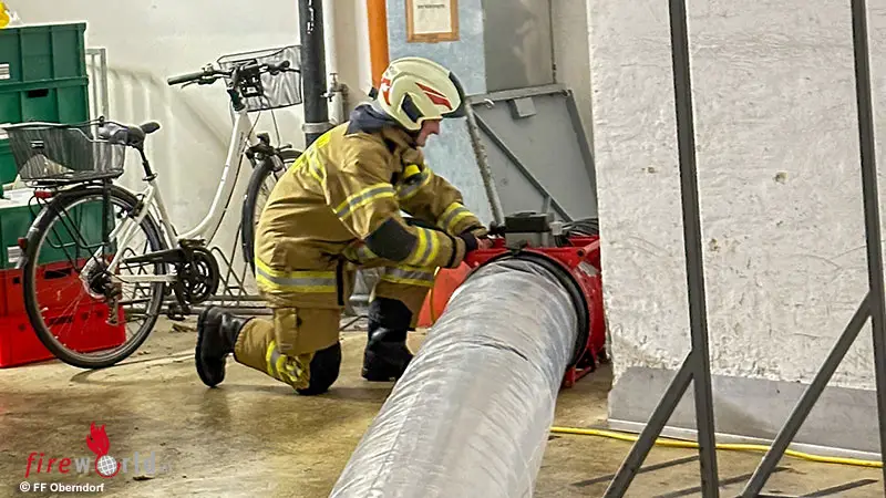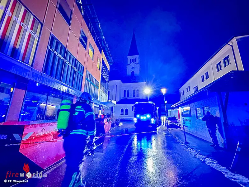 OBERNDORF (SBG): Am Nachmittag des 18. Jänner 2024 wurde die Feuerwehr Oberndorf um 15:19 Uhr mit dem Einsatzstichwort „Vermutlich Gasaustritt nach Schneidearbeiten im Boden“ in die Gaisbergstraße alarmiert. Nach den ersten Erkundungsmaßnahmen durch den Einsatzleiter konnten zuvor verrichtete Schneidearbeiten mit einem Benzin-betriebenen Schneidegerät im Verkaufsraum des Erdgeschosses festgestellt und dadurch stark erhöhte Kohlenstoffmonoxid-(CO)-Werte gemessen werden.