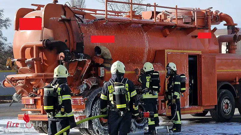 Vor Ort wurde ein sogenanntes schweres Saug-Druckfahrzeug vorgefunden, welches im Bereich der abgasseitigen Vakuumanlage heiß gelaufen war und Teile der Anlage Feuer gefangen haben. Ein umfangreicher Löschangriff mit mehreren unabhängig voneinander wirkenden Löschmitteln, sorgte für eine entsprechende Kühlung. Ein Übergreifen des Feuers auf weitere Fahrzeugteile und die Beladung des Fahrzeugs konnte somit verhindert werden.