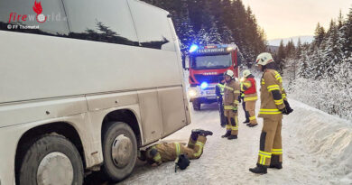 Feuerwache 5: Einsatzleitwagen, Gerätewagen-Höhenrettung, Feuerwehrkran, Wechselladerfahrzeug mit Abrollbehälter Anschlagmittel
