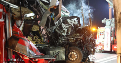 Drei Pkw, die von Süden kommend in Richtung Norden unterwegs waren, kollidierten mit dem abgerutschten Gestein. An allen drei Fahrzeugen entstand Sachschaden. Die Insassen der Fahrzeuge blieben unverletzt. Zur Bindung von ausgetretenen Flüssigkeiten und Entfernung der Felsbrocken von der Fahrbahn standen die FF Theißenegg und die FF Frantschach mit insgesamt 23 Mann/Frau und vier Fahrzeugen im Einsatz. Die Packer Bundesstraße (B 70) war im Bereich des Unfalles in der Zeit von 18.30 Uhr bis 19.00 Uhr für den gesamten Verkehr gesperrt.