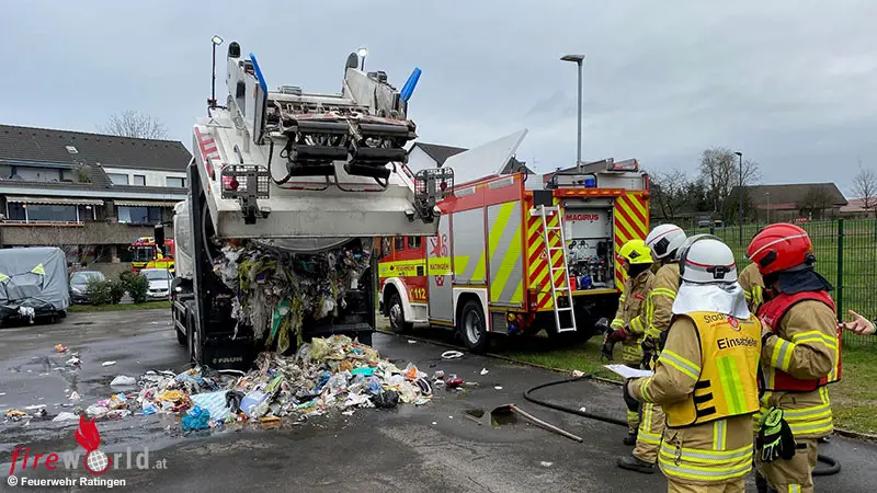 RATINGEN (DEUTSCHLAND): Gegen Mittag kam es in Ratingen-Eggerscheidt am 22. Februar 2024 zu dem Brand von Müll in einem Entsorgungsfahrzeug. Der Fahrer bemerkte den Brand, öffnete den Zugang zum Müllraum und begann mit dem Ausräumen des Brandgutes.