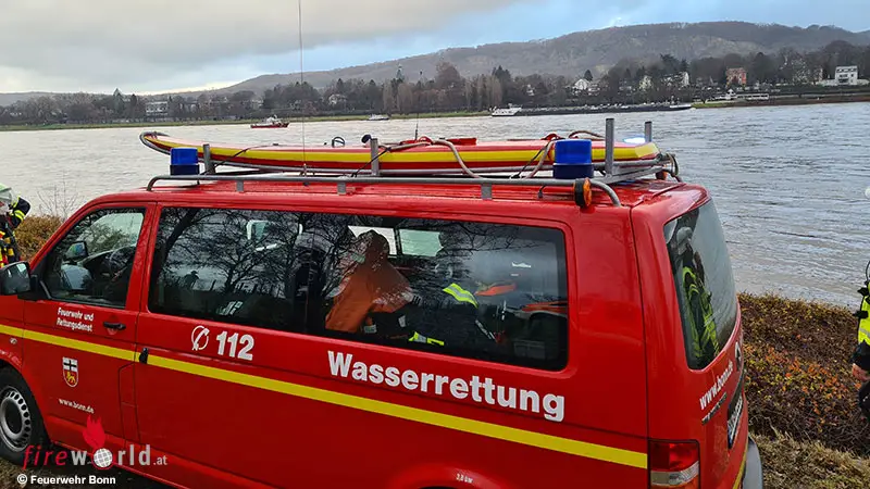 Gegen 12:23 Uhr wurde der Leitstelle von Feuerwehr und Rettungsdienst Bonn eine Person im Rhein auf Kilometer 664,7 gemeldet. Zahlreiche Einsatzkräfte aus dem Rhein-Erft-Kreis, Rhein-Sieg-Kreis und der Stadt Bonn wurden zum Einsatz alarmiert. Im Verlaufe des Einsatzes wurde eine Wasserleiche geborgen. Hierbei kenterte aus bisher ungeklärter Ursache das Mehrzweckboot der Feuerwehr Bonn und ging unter.