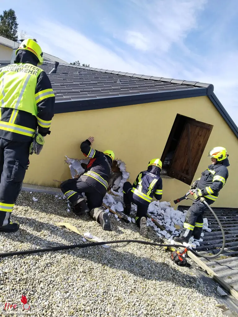 Aufgrund der Alarmmeldung, dass es sich nur um eine Nachkontrolle handelt, rückte anfangs auch nur das Tanklöschfahrzeug der Feuerwehr Alkoven aus. „Bei unserem Eintreffen wurde eine leichte Rauchentwicklung im Carport und im Dachbereich des Hauses festgestellt. Weiters war starker Brandgeruch am Dachboden wahrnehmbar“, berichtet Einsatzleiter Sandro Hicka die Ausgangslage für die Feuerwehr. „Durch Kontrolle mit der Wärmebildkamera wurden erhöhte Wärmeanzeichen in der Fassade festgestellt.“