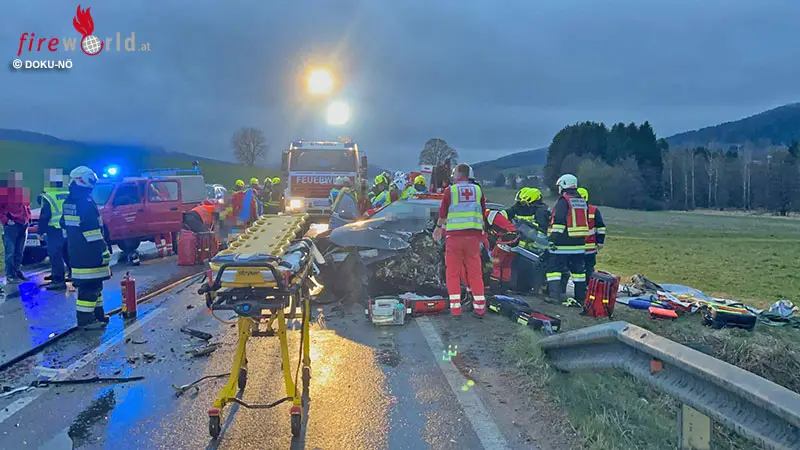 YSPER (NÖ): Am Samstagabend, 16. März 2024, ereignete sich im Bezirk Melk gegen 18 Uhr ein schwerer Frontalcrash auf der B36 bei Yspertal. Ein Pkw und ein Pickup kollidierten frontal miteinander, wobei beide Fahrzeuglenker Verletzungen erlitten.
