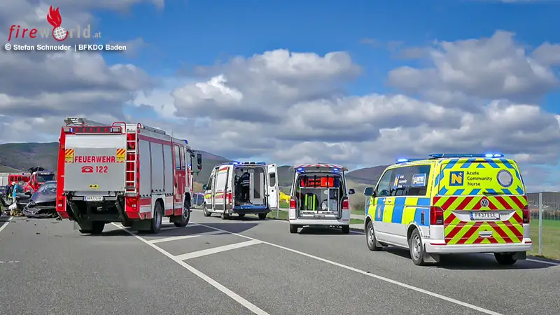 BAD VÖSLAU (NÖ): In den Mittagsstunden das 16. März 2024 wurden die Freiwilligen Feuerwehren Bad Vöslau und Gainfarn gemäß Alarmstufe 2 zu einer Menschenrettung nach Verkehrsunfall am Autobahnzubringer Bad Vöslau alarmiert.