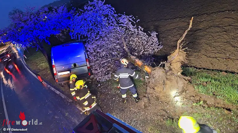 Stmk: Transporter fällt Baum bei Dietersdorf bei Fürstenfeld