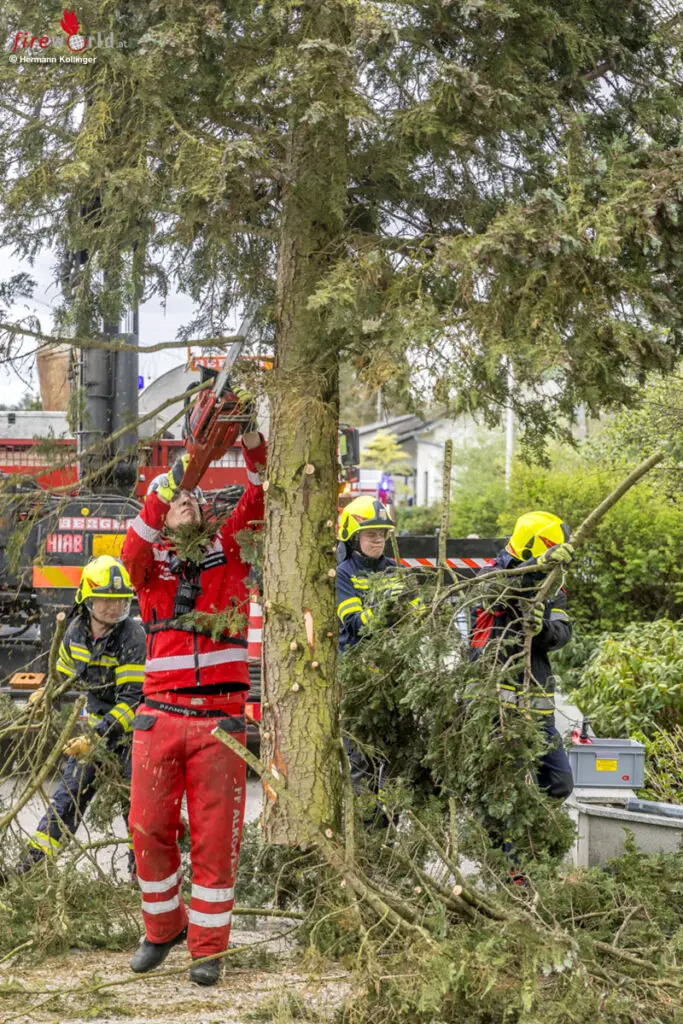 Oö: Baum droht in Alkoven auf Nachbargebäude zu stürzen → Föhnsturm 1. April 2024