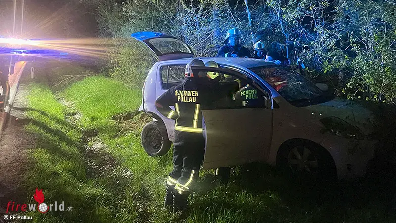 PÖLLAU (STMK): Um 21:15 Uhr des 4. April 2024 wurde die Freiwillige Feuerwehr Pöllau per Zugsalarm zu einem Verkehrsunfall auf die L406 Höhe Grüne Au gerufen. Aus noch unbekannter Ursache waren zwei Fahrzeuge miteinander kollidiert, woraufhin ein Pkw in den Straßengraben geschleudert und eine Person leicht verletzt wurde.