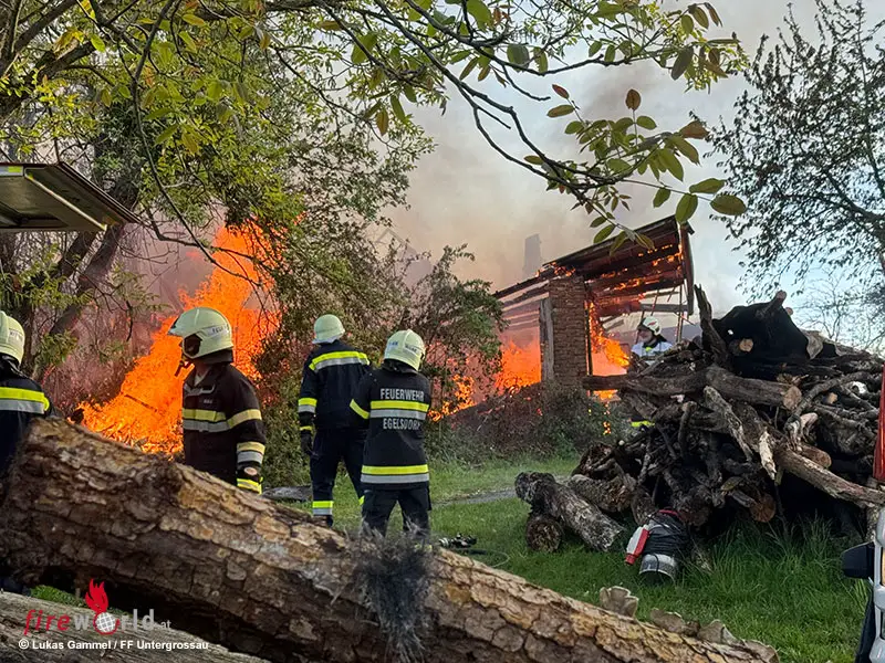 SINABELKIRCHEN (STMK): Am 13. April 2024 wurden um 18:09 Uhr die Feuerwehren Egelsdorf (Einsatzleitung), Gnies, Obergrossau, Untergrossau und Sinabelkirchen zu einem Wirtschaftsgebäudebrand am höchstgelegenen Punkt der Marktgemeinde Sinabelkirchen nach Egelsdorf-Berg alarmiert.