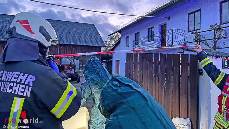 Oö: Gefahrstoffeinheit des Bezirkes Braunau übt auf landwirtschaftlichem Anwesen