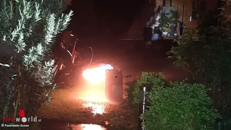 D: Brennende Propangasflasche in Wohnhaus-Garten in Essen