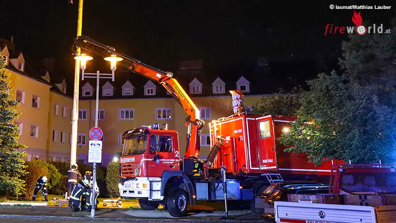 Die Einsatzkräfte der Feuerwehr wurden am Montagabend in den Stadtteil Vogelweide alarmiert, da dort der Maibaum umzustürzen drohte. Die Lageerkundung der Einsatzkräfte zeigte dann rasch, dass zwar keine unmittelbare Gefahr des Umstürzen gegeben war, dennoch befand sich der Maibaum in einer sichtlichen Schieflage. Die Einsatzkräfte richteten den Maibaum mittels Kran wieder gerade und sicherten ihn in der dafür vorgesehenen Vorrichtung mit weiteren Holzbalken und Keilen, sodass er nun auch kräftigeren Sturmböen standhalten müsste und im Gegensatz zum gestohlenen – und immer noch fehlenden – Maibaum vom Welser Stadtplatz stand jener am Vogelweiderplatz zumindest noch.