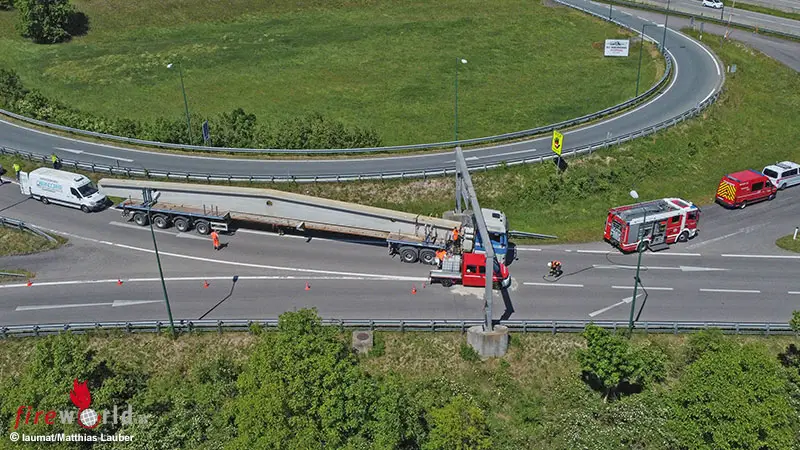 Oö: Betriebsmittelaustritt bei Sondertransport mit Betonfertigteil auf Innkreisautobahn bei Wels