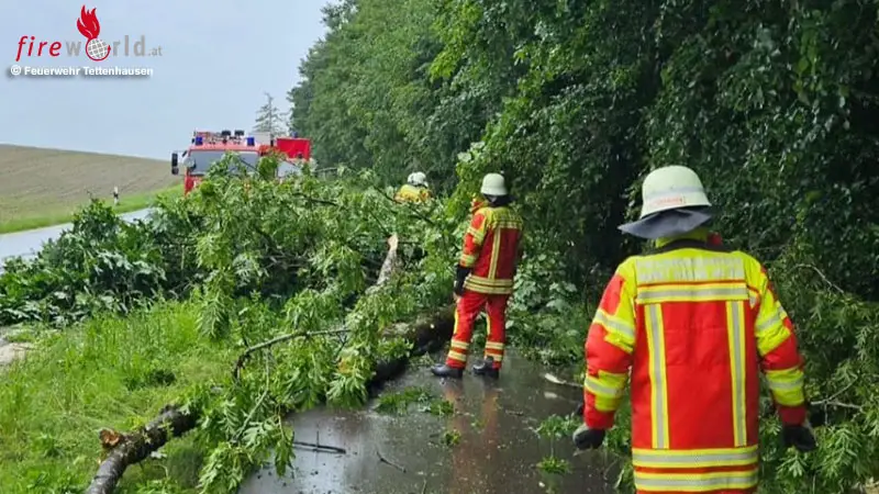 Die Feuerwehr Kienberg musste ausrücken, da es am Sportheimkeller zu einem Wassereintritt gekommen war. Gegen 10:15 Uhr wurde die Feuerwehr Tettenhausen alarmiert. Im Ortsbereich war ein Baum umgestürzt und blockierte halbseitig die Kreisstraße TS 26 im Bereich Harmannschlag.